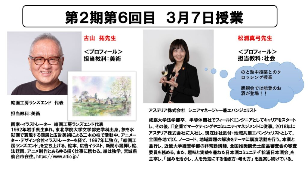 お知らせ:第2期第6回目の授業 2026年3月7日